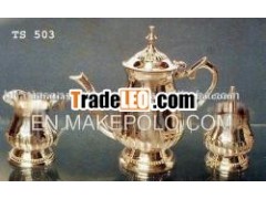 1 Silver plated tea & coffee sethand crafted VIP service andprofessional workmanship Competitive price with high quality- Tea set show cased is made out of solid Brass, Casted andcrafted By Hand, It can be Silver Plated in microns, Gold Plated orNickle Plated.