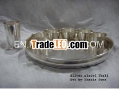 Thali set showcased is made out of Brass Sheet and then Silverplated according to the microns required .